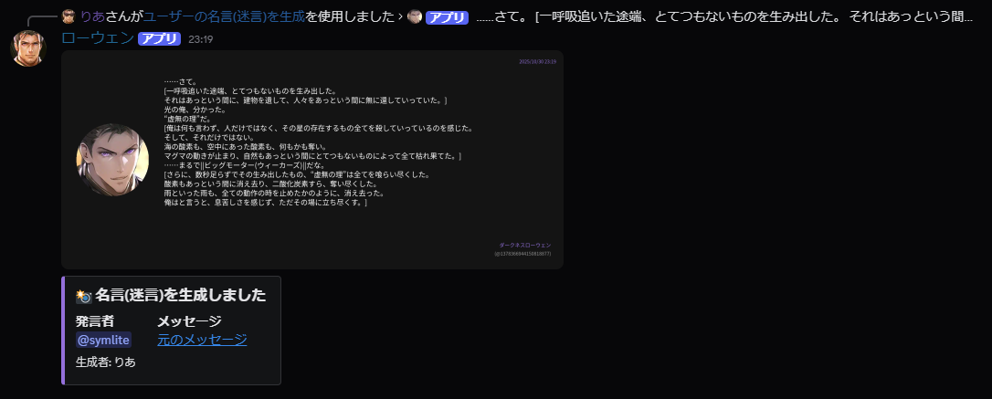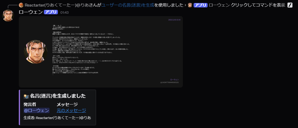 ユーザーの名言(迷言)を生成:名言のスラコマとは違い、機能はシンプル。